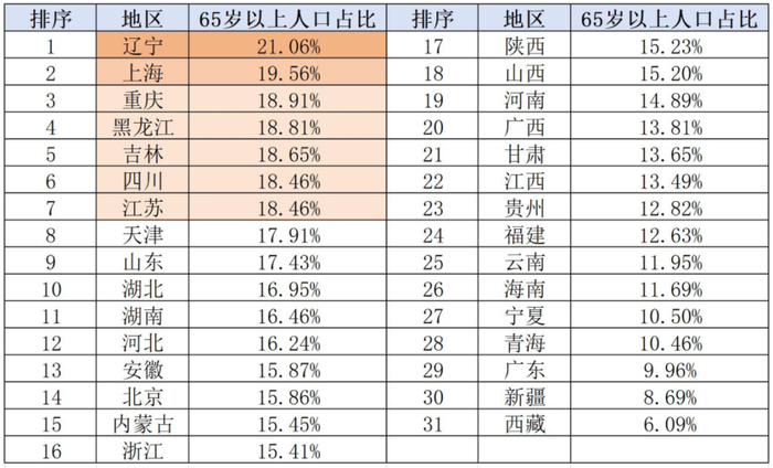 一般而言,60岁以上人口占比超过20%,为中度老龄化;超过30%,则进入重度老龄化阶段。