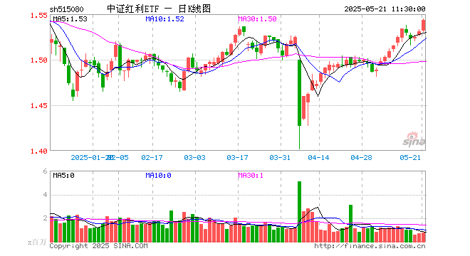 5月21日,截止午间收盘,中证红利ETF(515080)涨0.78%,报1.543元,成交额1.17亿元。中证红利ETF(515080)重仓股方面,中远海控截止午盘涨2.20%,冀中能源涨1.33%,海澜之家涨2.73%,宁波华翔跌0.68%,山煤国际涨5.93%,唐山港涨0.00%,重庆百货跌0.88%,成都银行涨1.86%,山西焦煤涨1.11%,中谷物流涨2.20%。