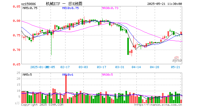 机械ETF(159886)涨1.47%,半日成交额209.29万元