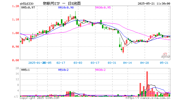 5月21日,截止午间收盘,物联网ETF(516330)跌0.51%,报0.971元,成交额126.47万元。物联网ETF(516330)重仓股方面,立讯精密截止午盘跌1.20%,汇川技术跌0.22%,韦尔股份跌1.16%,中兴通讯涨0.37%,美的集团涨0.04%,中际旭创涨0.35%,科大讯飞跌0.95%,海康威视涨0.75%,海尔智家跌0.27%,兆易创新跌5.71%。
