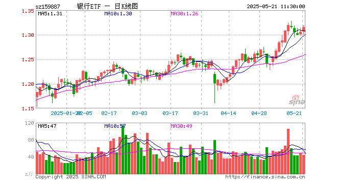 银行ETF(159887)涨0.69%,半日成交额5766.37万元
