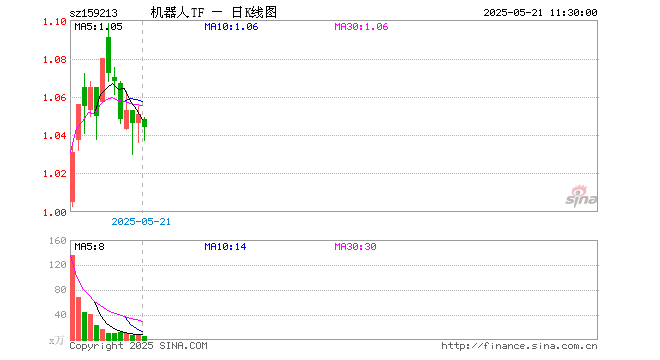 5月21日,截止午间收盘,机器人ETF基金(159213)跌0.67%,报1.044元,成交额613.03万元。机器人ETF基金(159213)重仓股方面,汇川技术截止午盘跌0.22%,科大讯飞跌0.95%,大华股份跌0.45%,中控技术跌0.82%,石头科技涨2.83%,双环传动跌1.07%,机器人跌1.00%,大族激光涨0.17%,巨轮智能跌1.34%,拓邦股份跌1.07%。