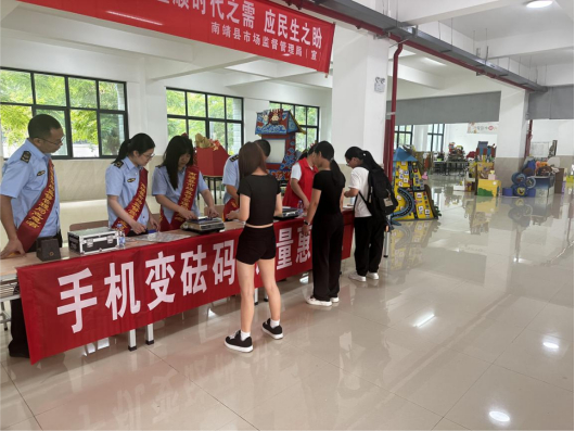 聚焦民生计量痛点,守护公平交易。南靖县市场监管局在船场镇集贸市场,通过悬挂横幅、发放宣传手册、现场答疑等方式,向商户和消费者宣传计量法律法规,重点讲解电子秤防作弊知识。向群众提供“手机变砝码”等便民服务,体验将手机作为标准砝码,核验电子秤准确性,提高群众共同参与计量监督的便利性。