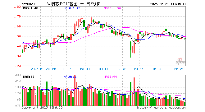 科创芯片ETF基金(588290)跌0.27%,半日成交额5570.23万元