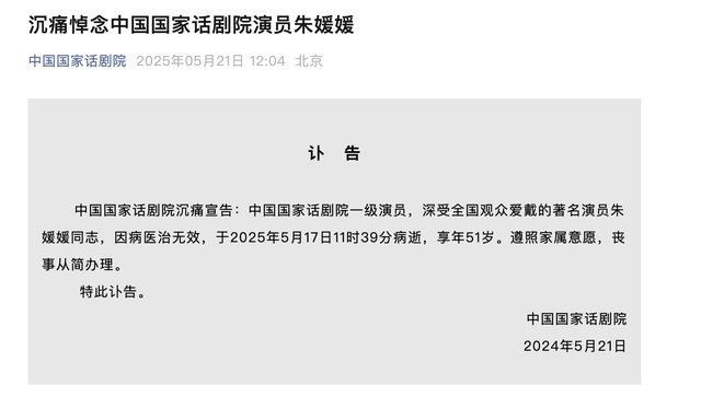 此外,中国国家话剧院也发文“沉痛悼念中国国家话剧院演员朱媛媛” ↓