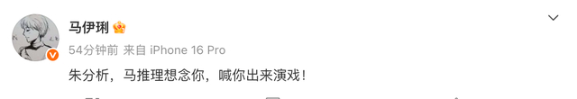 马伊琍:“朱分析,马推理想念你,喊你出来演戏! ” ↓