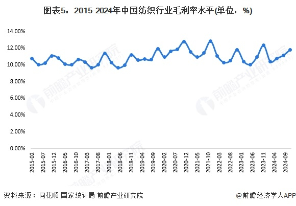 2025年中国纺织行业经营效益分析:行业盈利能力减弱,毛利率周期性波动显著