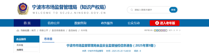 宁波市市场监督管理局食品安全监督抽检信息通告(2025年第9期)