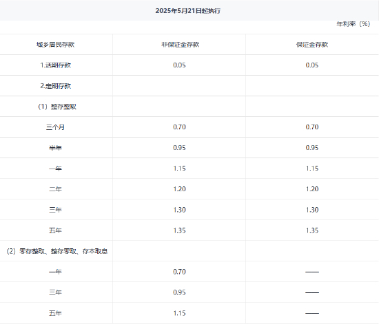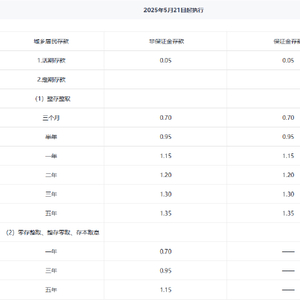 5月21日金融一线消息,兴业银行下调存款利率。兴业银行官网信息显示,该行于5月21日执行最新的人民币存款利率。其中,活期利率下调至0.05%。定期存款方面,整存整取三个月期、半年期、一年期、二年期、三年期、五年期分别下调至0.70%、0.95%、1.15%、1.20%、1.3%、1.35%。