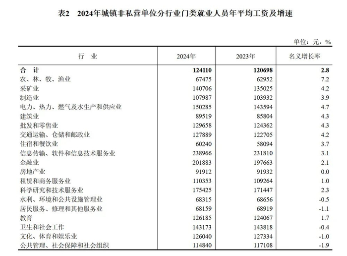 平均工资是重要的民生指标和经济指标。近日,国家统计局公布的最新数据显示,2024年,城镇非私营单位就业人员年平均工资为124110元,城镇私营单位就业人员年平均工资为69476元。