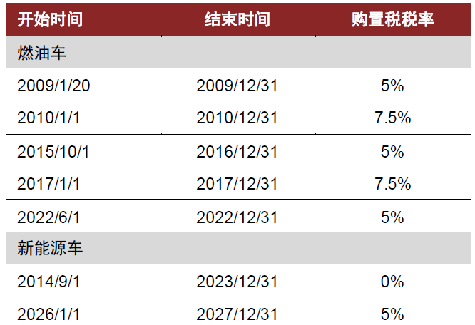 图表2:我国历次车辆购置税减征政策