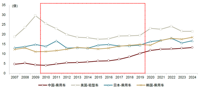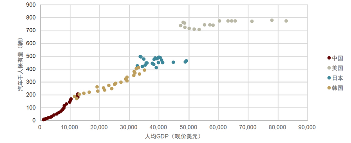 注:美国采用轻型车口径,中日韩采用乘用车口径资料来源:国家统计局,中汽协,BEA,JAMA,KAMA,中金公司研究部