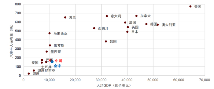 图表10:与高收入市场相比,中国汽车千人保有量仍有提升空间