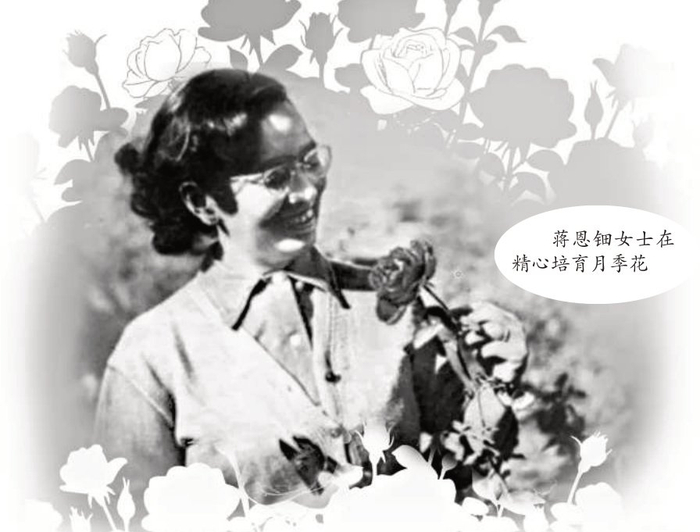 1953年,蒋恩钿的丈夫调到天津工作,她便把这些月季移栽到天津睦南道的家中。后经五年辛劳,她不仅精通了月季种植技艺,还对月季的栽种历史以及月季的文化内蕴有了更深的研究和认识。她在一篇文章中提出了“月季是中国原产,中国是月季的故乡,是月季之母”的观点,并被世界接受。