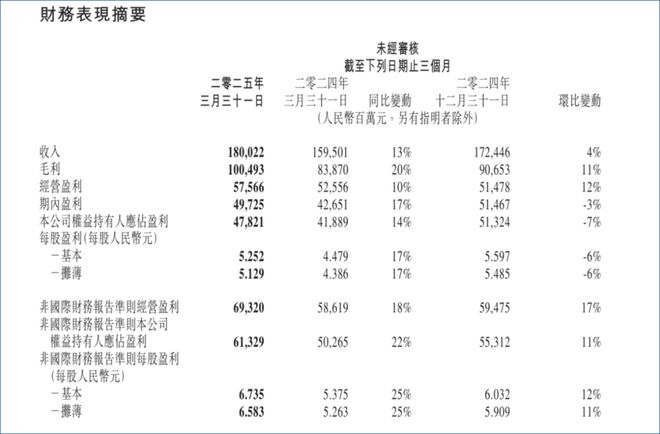 “韬光养晦、后发制人”,腾讯2025年第一季度的业绩表现可以具象化为以上8个字。在AI整体赋能的情况下,腾讯控股(00700.HK)Q1营收达到了1800.2亿元,同比增长13%,相当于日入20亿;净利润478.21亿元,同比增长14%,每天净赚5.3亿。营收、净利双位数双增长,代表腾讯重回扩张周期。