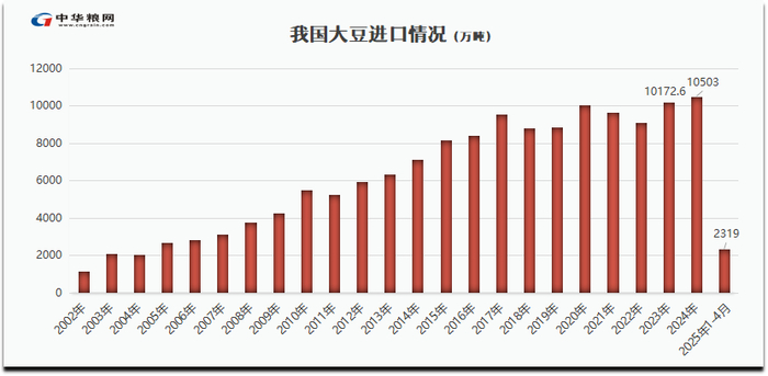 根据海关最新数据,2025年1-4月我国累计进口粮食进口量为3182万吨,同比减少39.9%;进口金额为962.5亿元人民币,较去年同期减少40.5%。