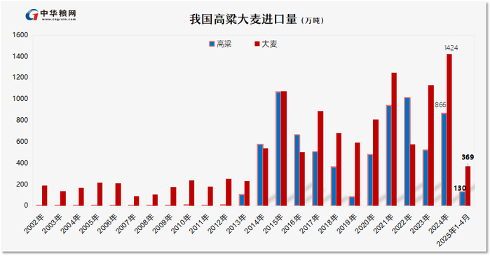 高粱:4月进口高粱20万吨,同比减少75.5%;1-4月累计进口高粱130万吨,同比减少56.2%。