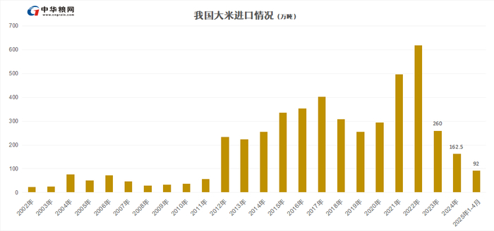 1-4月累计进口量为92万吨,同比增加约90%。其中从越南进口31万吨,占比34%;泰国进口20.6万吨,占比22.7%;缅甸进口16.5万吨,占比18%;印度进口12.8万吨,占比14%。