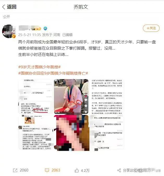 网传9岁天才围棋少年被父亲家暴后坠楼,当地妇联:非常痛心,仍在调查中