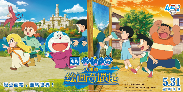 据“哆啦A梦”的官方账号显示,《哆啦 A 梦:大雄的绘画奇遇记》为“哆啦A梦”电影45周年纪念作品,影片聚焦“绘画”主题大冒险,将故事背景设置在具有浓厚艺术氛围的中世纪欧洲大陆,五人组通过哆啦A梦的秘密道具“进入灯”,穿梭到名画中13世纪的雅托利亚公国,并邂逅了神秘少女可蕾雅。就在人们以为一切都归于平静之时,古老的传说复苏,哆啦A梦一行人和新伙伴遭遇了大危机,他们会如何面对这一切,让人充满期待。