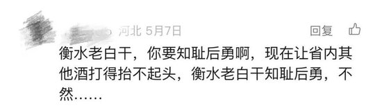 关于被其他品牌直接“抄家”的情况,另一位河北网友也深有感触。而诸如“让省内其他酒打得抬不起头”“要知耻而后勇”般的叮嘱,更透露了这位网友对衡水老白干“强反击”的期待。