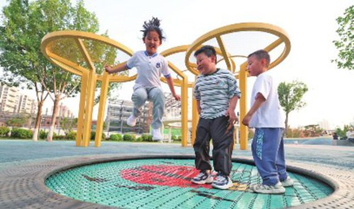 近年来,河北省石家庄市深入推进城市更新行动,还空间于城市、还绿地于人民、还公共配套服务于社会,不断增进民生福祉。自2021年以来,全市已累计改造老旧小区2208个,惠及居民30多万户。图为小朋友们在石家庄拾光智慧体育公园玩耍。新华社