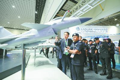 在开展当天,来自马来西亚、柬埔寨、老挝、泰国、越南等国家和地区的20多个军政代表团密集到访中国展台,并开展深入交流。马来西亚第一副总理扎希德亲临现场,听取了重点军贸产品的介绍。