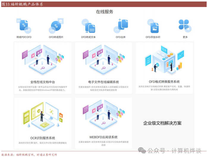 收购福昕鲲鹏,统一 PDF 与 OFD 生态。福昕鲲鹏成立于 2014 年,参与国家标准《信息技术 OFD 档案应用指南》的编制,主营 OFD 版式办公套件软件、转换服务、云阅读、GSDK(GeneralSDK)、电子证照系统等产品。随着信创产业已经从“试点实践期”进入到“规模化推广期”的关键阶段,产业需求正在全面打开,而 OFD 作为对标 PDF 的国产版式文档标准,未来 OFD 版式办公套件、云阅读产品等在办公领域的重要性也将逐步提升。2024 年 3 月 23 日,公司使用超募资金9,023.8144 万元,收购福昕鲲鹏 38.2749%的股权,叠加此前持有的 34.9687%的股权,现合计持有 73.2436%的股权。公司借助本次收购,快速打开信创 OFD 市场,进一步开拓 PDF+OFD 的版式文档业务布局,并通过与福昕鲲鹏的业务整合提升公司在国内版式文档领域的市占率。