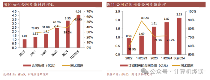 订阅相关合同负债维持高增,彰显未来订阅收入高景气。根据 iFinD,2020-1Q2025,公司合同负债规模从 1.01 亿元提升至 4.06 亿元,1Q2025 受到通办信息并表影响合同负债显著增加。1H2023、2023、1H2024 公司订阅相关合同负债增速为 89.2%、71.3%、71.7%,维持高景气,为后续订阅收入高增长提供强支撑。