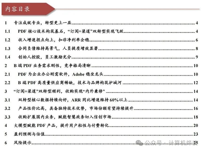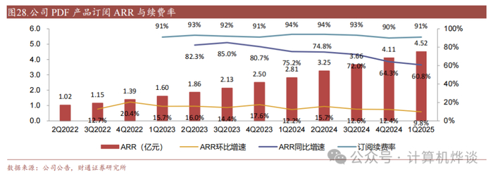 订阅ARR增长不及预期:ARR是公司主业的核心指标,ARR同比增速当前高于PDF表观收入增速,对整体收入增长起到主要带动作用,若单季度ARR增幅不及预期,可能导致整体收入增速放缓。