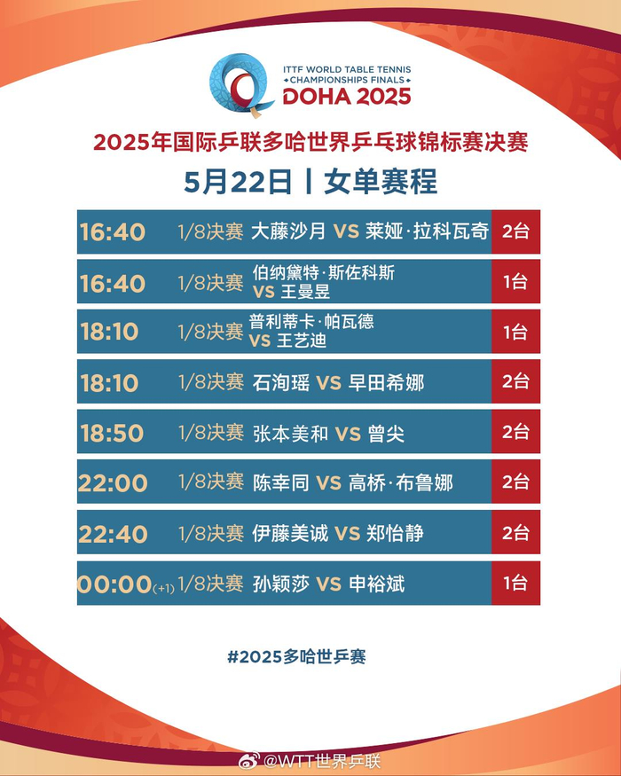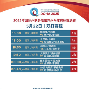 国乒加油!王楚钦/孙颖莎冲击混双4强 多哈世乒赛第六日赛程→