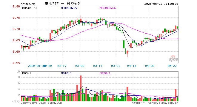 电池ETF(159755)业绩比较基准为国证新能源车电池指数收益率,管理人为广发基金管理有限公司,基金经理为罗国庆,成立(2021-06-15)以来回报为-29.07%,近一个月回报为9.76%。