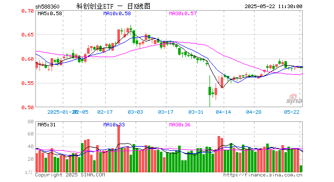 科创创业ETF(588360)跌0.34%,半日成交额565.15万元