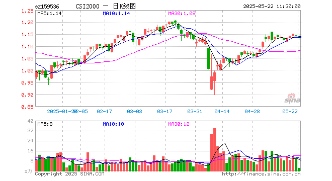 5月22日,截止午间收盘,中证2000指数ETF(159536)跌0.87%,报1.133元,成交额270.56万元。中证2000指数ETF(159536)重仓股方面,汉威科技截止午盘跌1.15%,南亚新材涨0.95%,巨轮智能跌0.34%,新开普跌0.22%,三德科技跌1.77%,圣阳股份涨1.69%,纽威数控跌0.46%,国脉科技跌2.24%,鼎泰高科跌1.82%,永鼎股份涨0.13%。