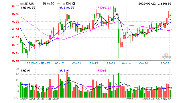 5月22日,截止午间收盘,医药50ETF(159838)跌0.36%,报0.557元,成交额291.35万元。医药50ETF(159838)重仓股方面,药明康德截止午盘跌0.05%,恒瑞医药跌0.25%,迈瑞医疗涨0.45%,爱尔眼科跌1.09%,片仔癀跌0.16%,联影医疗跌1.39%,科伦药业跌0.29%,长春高新跌1.25%,康龙化成跌0.96%,东阿阿胶跌0.86%。
