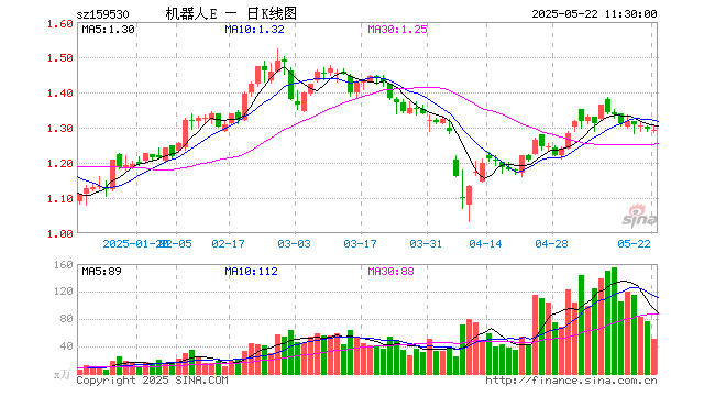 5月22日,截止午间收盘,机器人ETF易方达(159530)跌0.15%,报1.293元,成交额6695.49万元。机器人ETF易方达(159530)重仓股方面,汇川技术截止午盘跌1.21%,科大讯飞涨0.56%,石头科技涨1.59%,全志科技跌0.15%,双环传动跌0.03%,机器人跌0.48%,华工科技跌0.12%,中控技术跌0.50%,大华股份跌0.19%,绿的谐波跌0.29%。