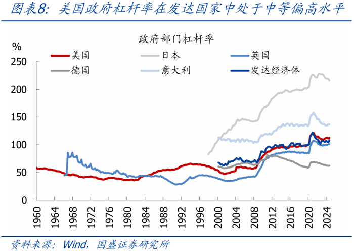 1、过去三年美债发行中短债占比超过80%,这决定了美债到期是“滚动式”高峰,今年1-5月美债到期规模与去年同期相近。目前美国政府杠杆率约112%,在发达经济体中属于中等偏高水平,仍有继续加杠杆的空间。因此除非美国债务上限始终无法解决、政府被迫长期停摆(可能性很低),否则无需担心美债偿付能力不足;