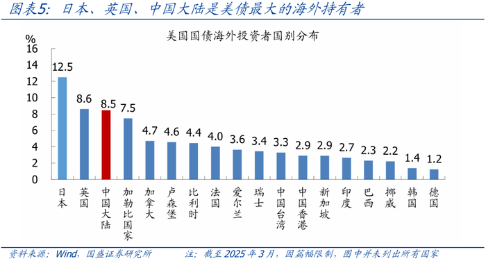 核心观点:单一国家选择减持美债作为关税反制措施,大概率只会导致美债短期波动加大,不会驱动美债收益率持续大幅抬升,理由主要有4点: