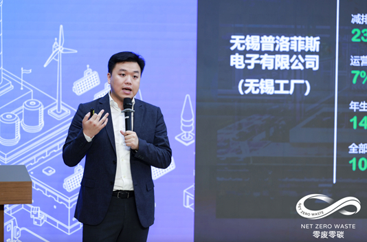 施耐德电气综能微网业务负责人黄弘扬展示了公司在智能制造与能源管理的创新实践。施耐德电气供应链通过践行“5R循环经济模式”实现废弃物零填埋;同时,通过AI赋能的能源管理、微电网、智慧楼宇等技术,在多家工厂提升绿色能源消纳,提升能效,获得经济受益的同时达成零碳目标。此外,施耐德电气打造的“绿色能源管理和绿色智能制造解决方案”已赋能各行业多场景客户加速零碳达成,例如该方案助力某光伏龙头企业实现了单位能耗降低12%。