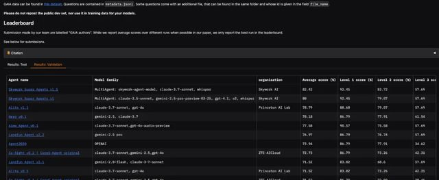 天工(Skywork)的deep research agent框架在Meta和Huggingface联合推出的GAIA的评测集上取得了82.42的高分,超越了OpenAI Deep Research和Manus,位居第一(2025年5月10日数据)。