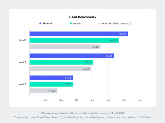 5月22日,昆仑万维面向全球市场,同步发布天工超级智能体(Skywork Super Agents)。这款产品采用了AI agent架构和deep research技术,能够一站式生成文档、PPT、表格(excel)、网页、播客和音视频多模态内容。它具有强大的deep research能力,在GAIA榜单上排名全球第一,超过了OpenAI Deep Research和Manus。