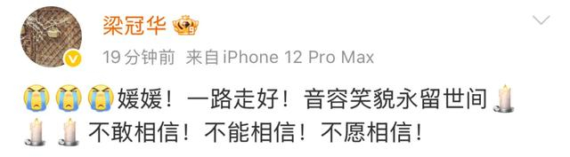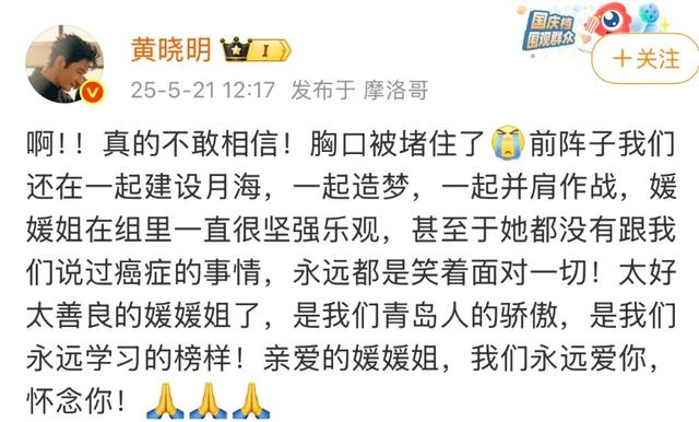 昨日,黄晓明、赵丽颖、夏雨、马伊琍、姚晨、秦海璐、梁冠华、冯远征、罗海琼等多位明星发文悼念。