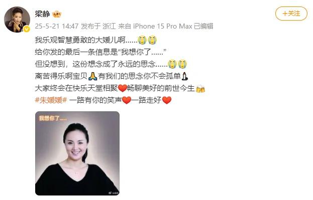 演员梁静给朱媛媛发送的最后一条信息是“我想你了……”,但这句原本流露思念的日常问候,最终因朱媛媛的离世成为永远无法得到回应的遗憾。