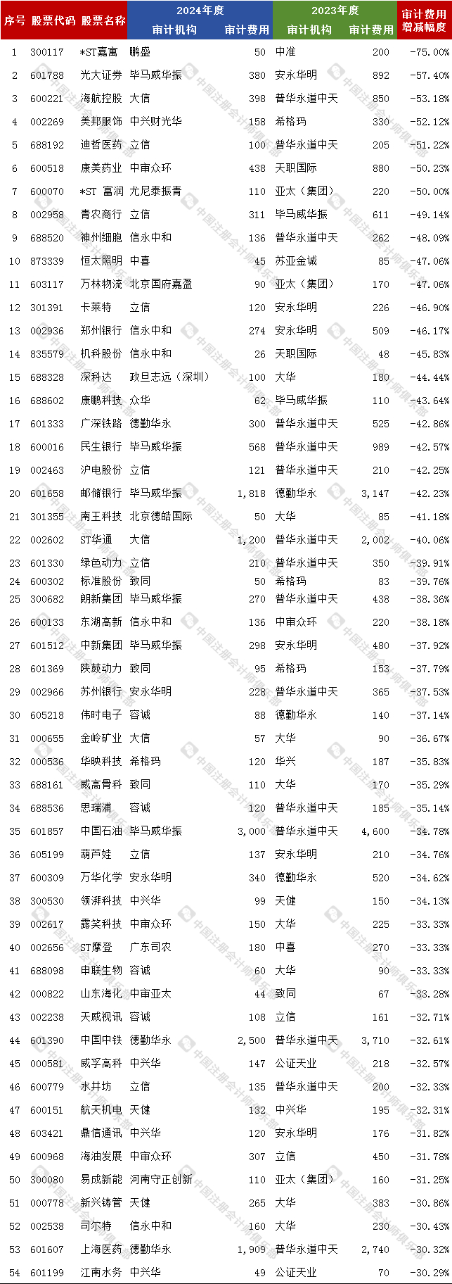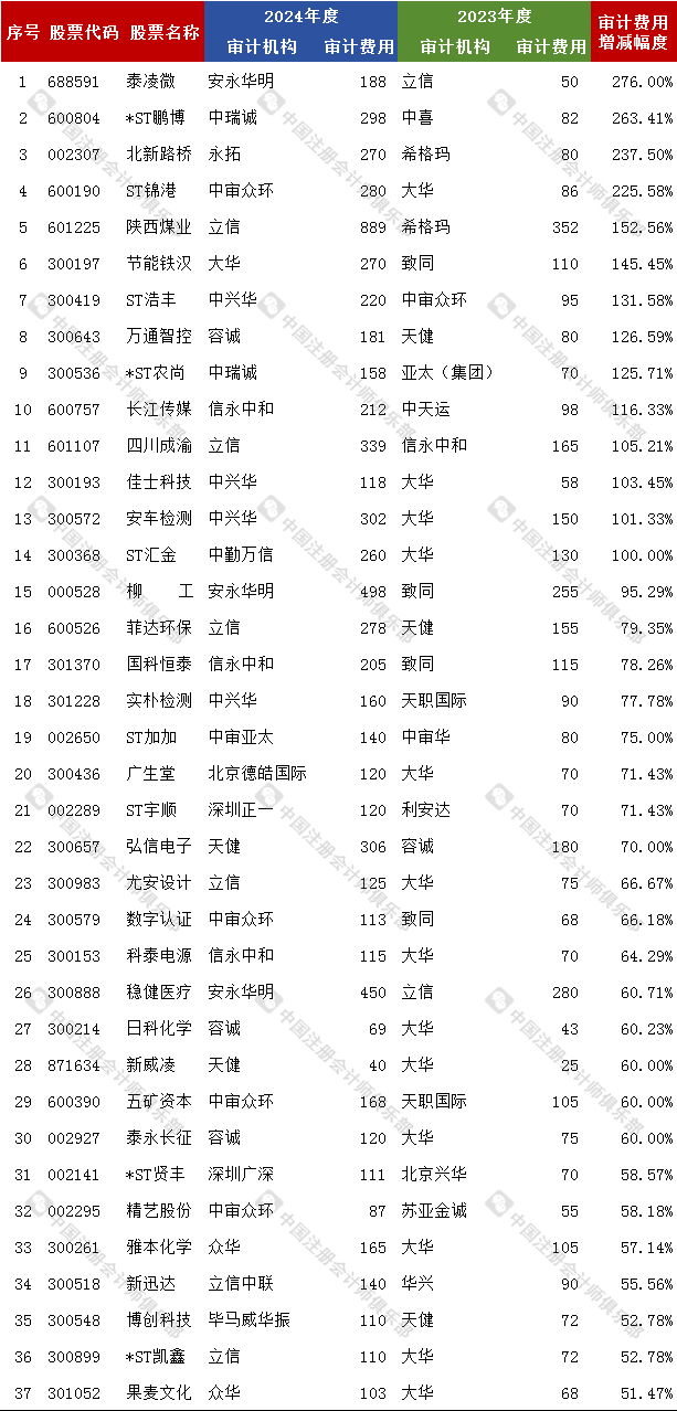 最高涨276%,最低降75% !这些上市公司2024年审计费用大幅变动!