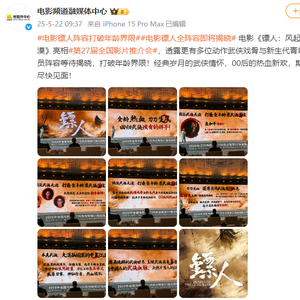 @电影频道融媒体中心 写道:电影《镖人:风起大漠》亮相第27届全国影片推介会,透露更有多位动作武侠戏骨与新生代青年演员阵容等待揭晓,打破年龄界限!经典岁月的武侠情怀,00后的热血新欢,期待尽快见面!