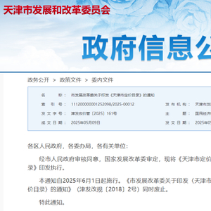 近日,市发展改革委公布新版《天津市定价目录》(以下简称《目录》),将于2025年6月1日起施行。