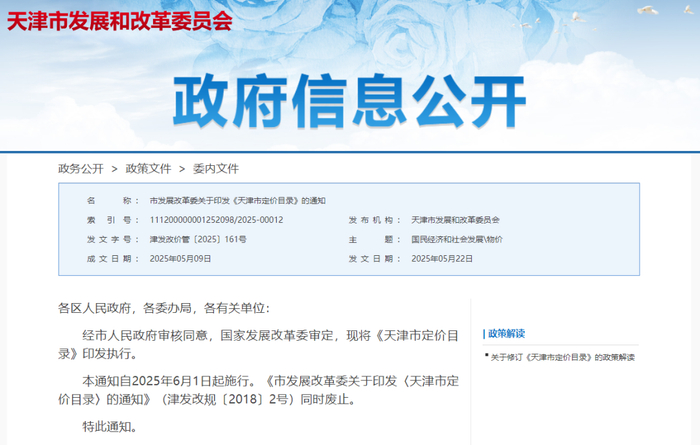 6月1日起施行,事关天津这些领域定价!