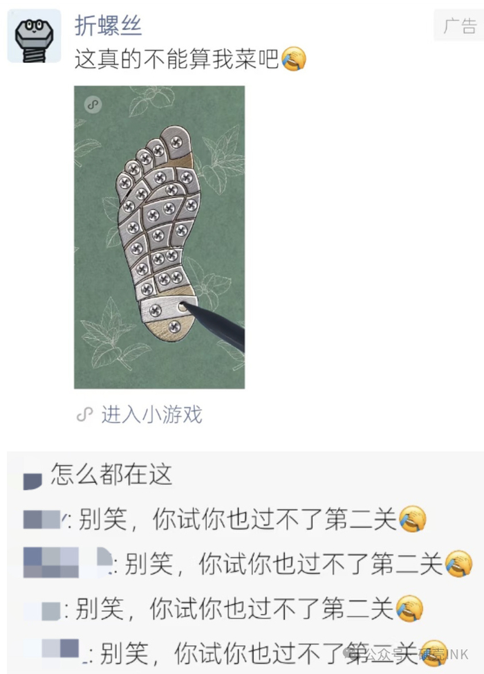 最近,一款名为“折螺丝”的小游戏广告,引发大家在微信朋友圈疯狂刷屏。