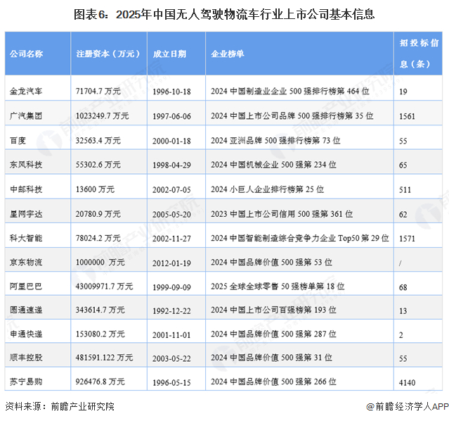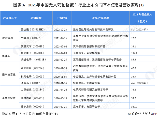 【最全】2025年无人驾驶物流车行业上市公司全方位对比(附业务布局汇总、业绩对比、业务规划等)