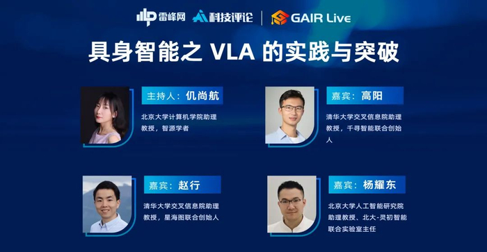 2025 年 5 月 9 日,雷峰网、AI 科技评论 GAIR Live 品牌举办了一场主题为“具身智能之 VLA 的实践与突破”的线上圆桌沙龙。